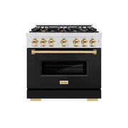 ZLINE Autograph Edition 36 in. 5.2 cu. ft. Classic Dual Fuel Range with 6 Burner Gas Cooktop and Electric Convection Oven in Satin Stainless Steel with Polished Gold Accents (CDRSZ-36-G)